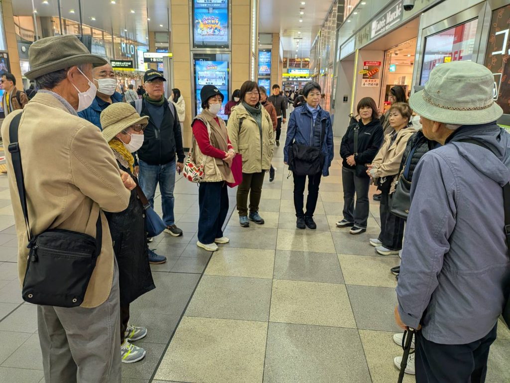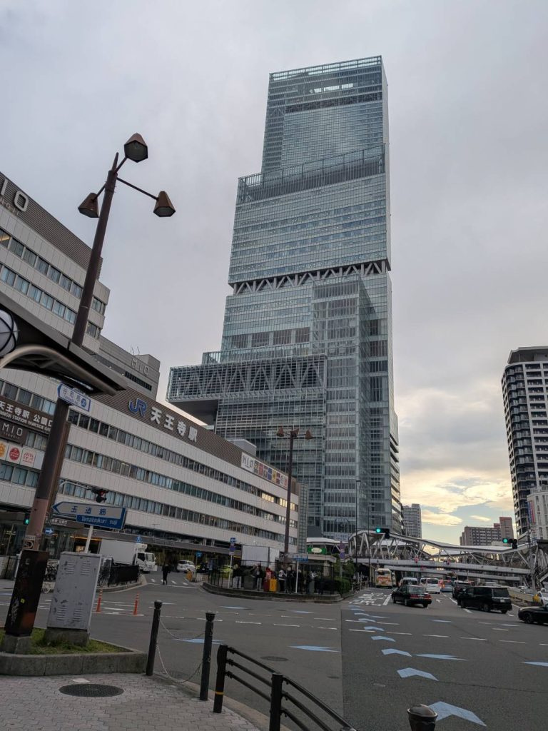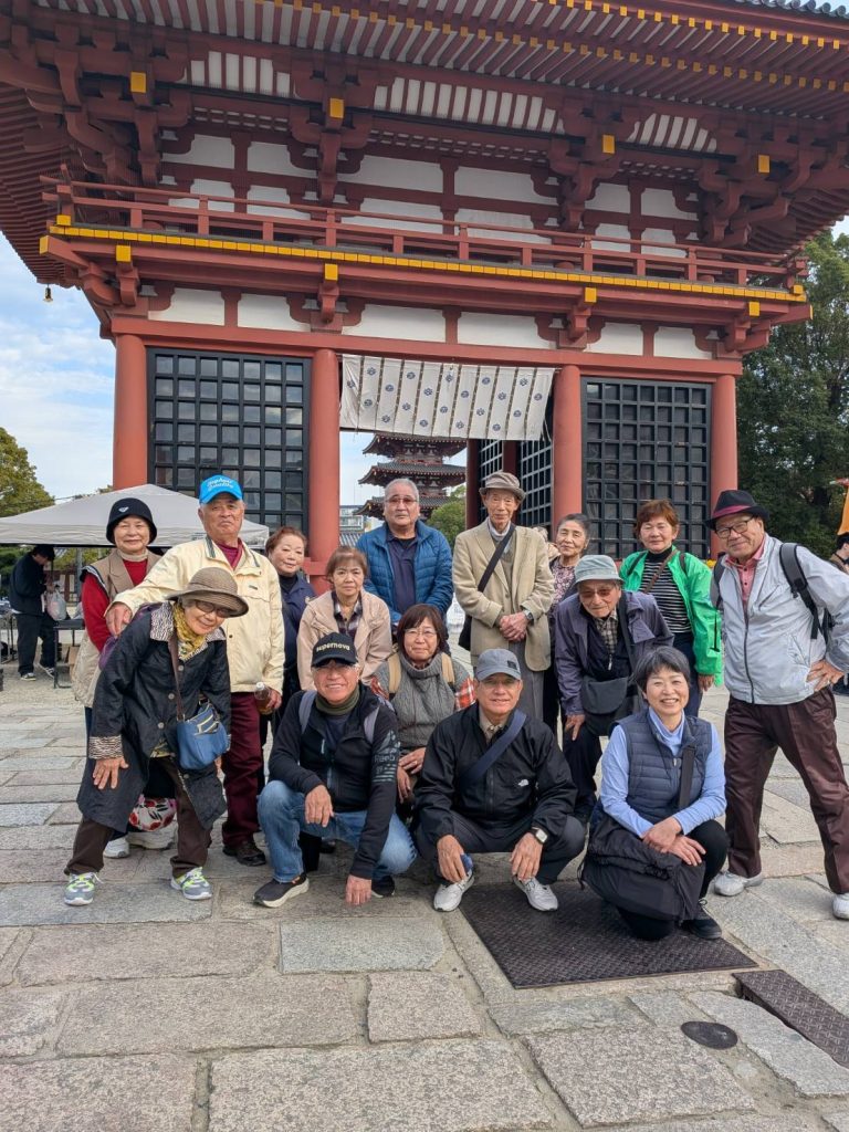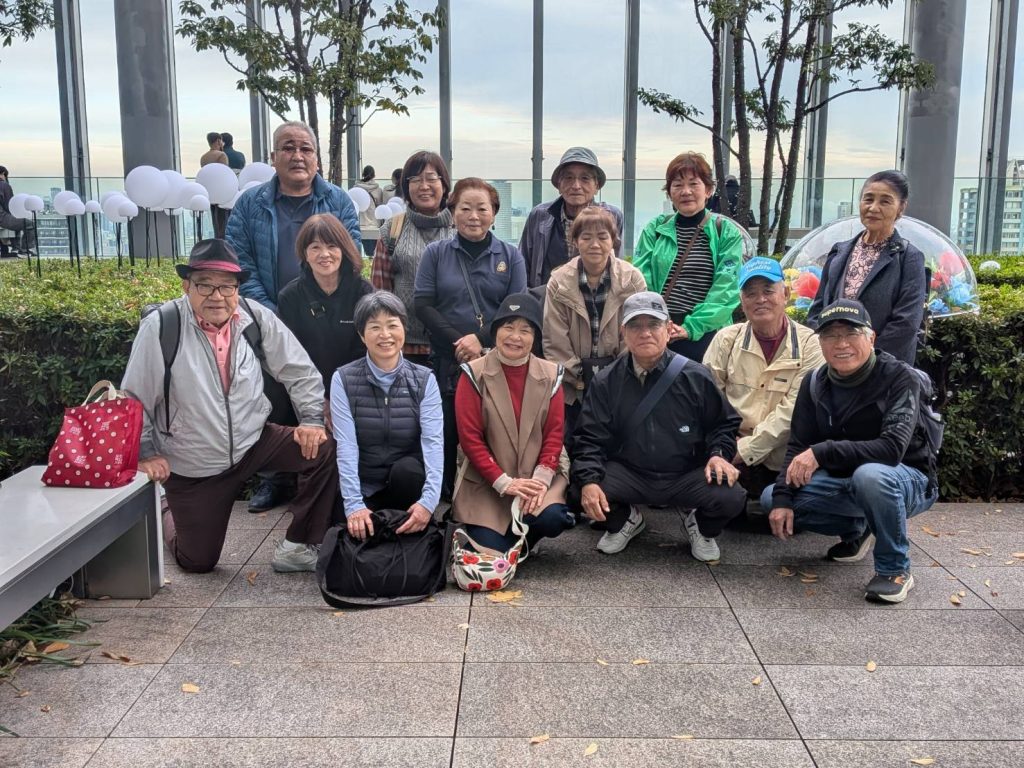 四天王寺の広大な境内を探索したのち、終点のあべのハルカスへ、ハルカスは2014年の竣工以来、2023年に東京・麻布台ヒルズ森JPタワー(325m)が完成するまでは日本一の高さ(300m)を誇っていましたが、現在は日本第2位の高さとなっています。展望台で最後の集合写真を撮影、ここで三々五々の解散となりました。