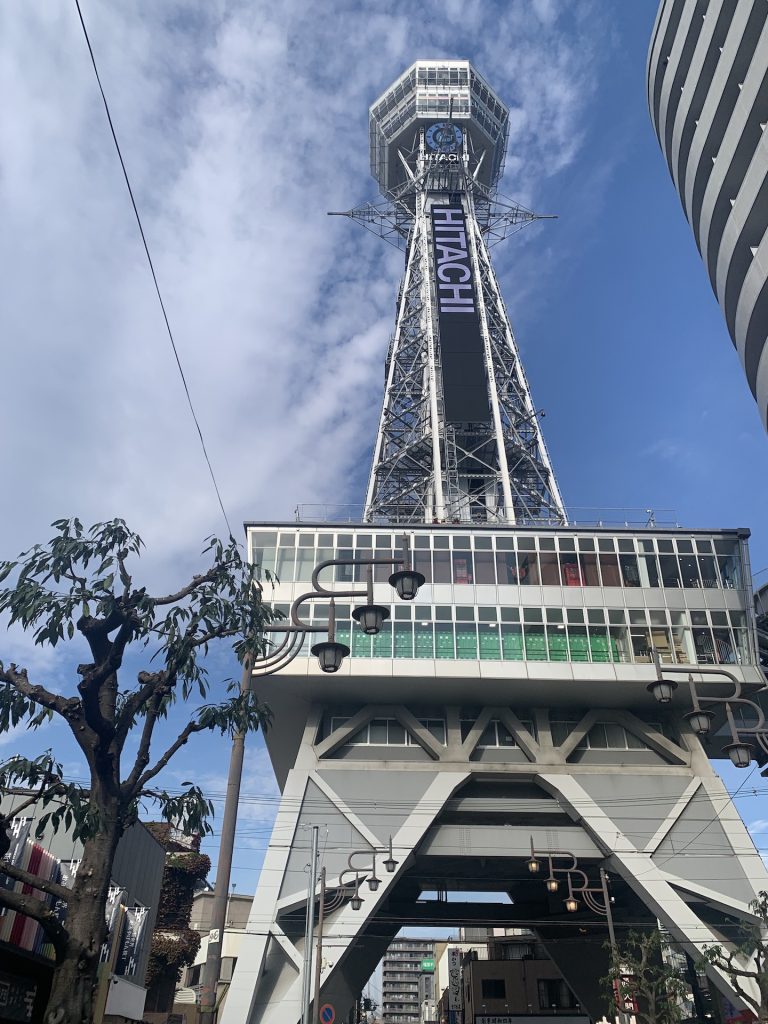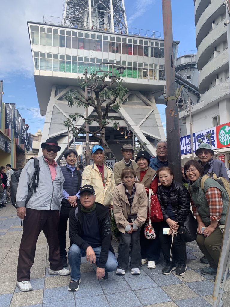 続いて通天閣へ、展望台の待ち時間が1時間半とのことで断念、代わりに通天閣をバックに記念撮影、周辺はインバウンド観光客などでごった返して、前に進むのも一苦労でした。
