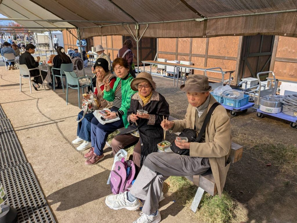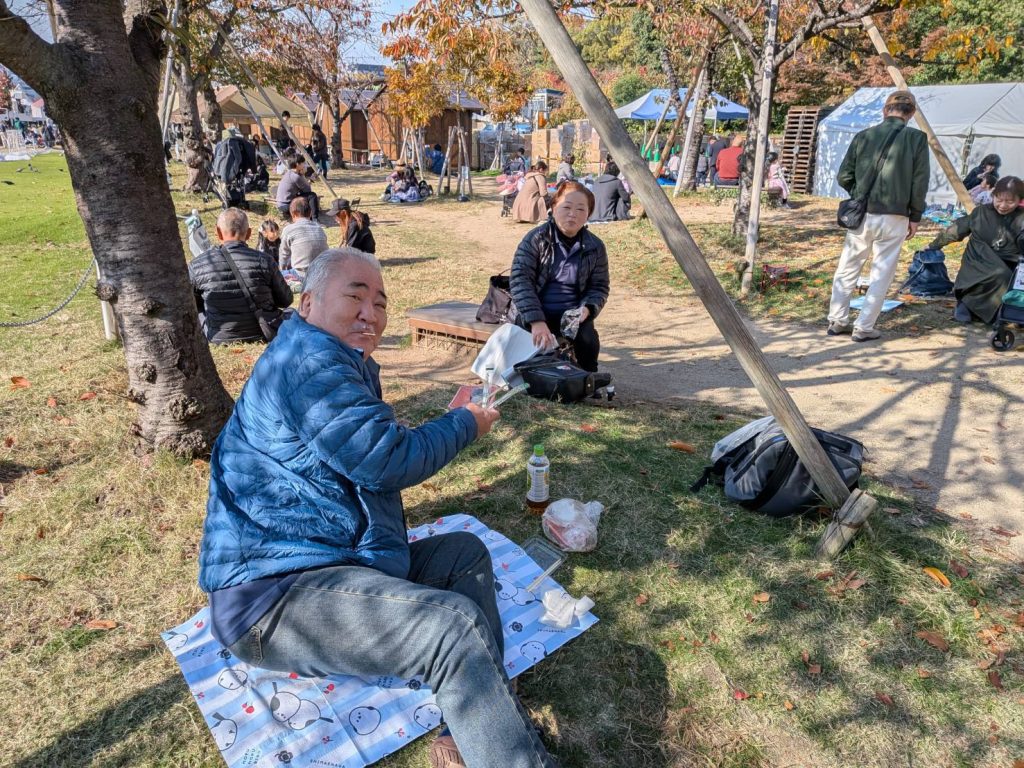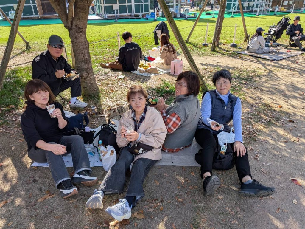 天王寺公園芝生広場「てんしば」で昼食、外での弁当は何故かうまい。